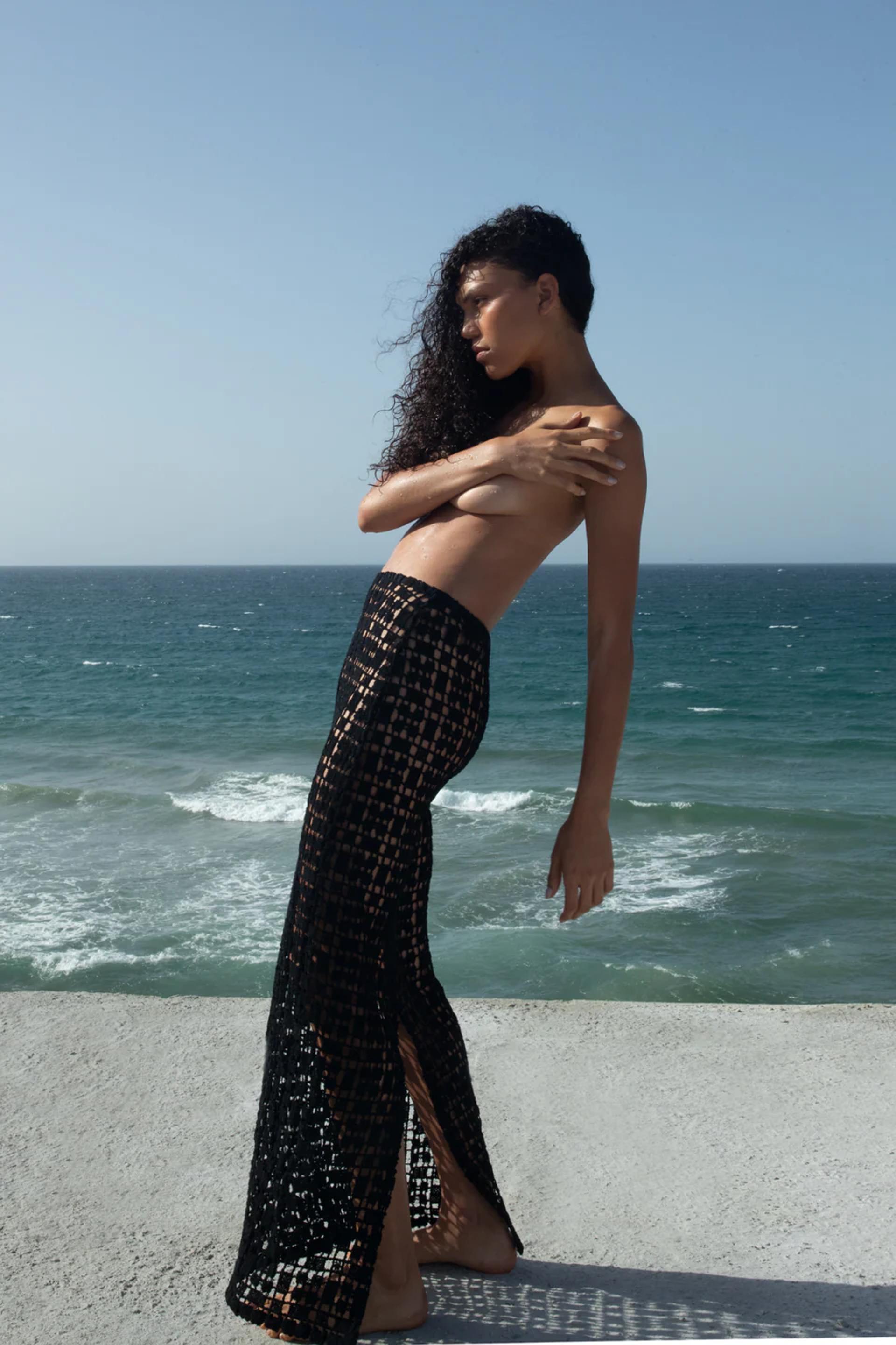 Eileen Gray’s work reveals an instinctive understanding of proportion and restraint. Her lacquer screens, composed of alternating planes, invite light to move through space with precision. The creation of our black mesh began from this same sense of balance. Woven from cotton, the fabric explores the tension between structure and softness, opacity and transparency. Its open construction recalls the rhythm of Gray’s panels, where air and material coexist in harmony.